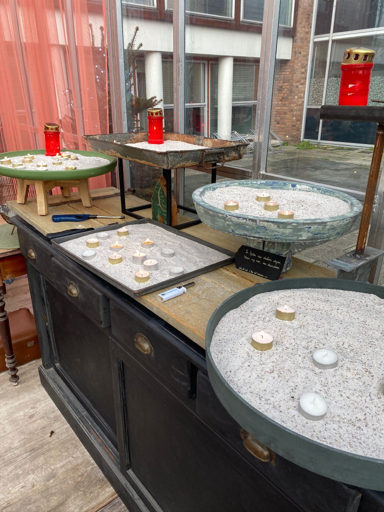 De Kas voor Rouwen en Vieren is een plek van troost voor mensen die juist in de donkere dagen rondom kerst het gemis van een iets of iemand het meest ervaren. Fijn als je wilt helpen als vrijwilliger om er te zijn voor hen die een kaarsje willen branden, iets schrijven in het gedenkboek of een luisterend oor bij je vinden. Je kunt je inschrijven en een of meerdere tijdsloten selecteren via de knop hieronder: